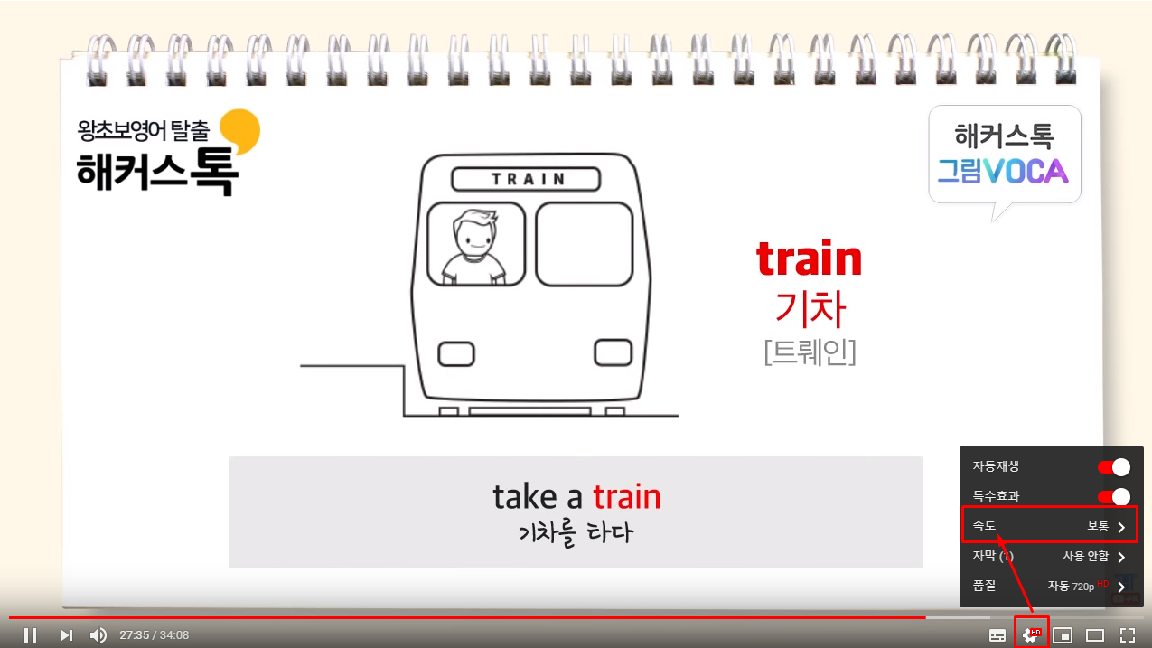 Tips ; 빠른 속도로 학습하실 경우 유튜브 설정버튼을 누르시면 속도조절도 가능해요