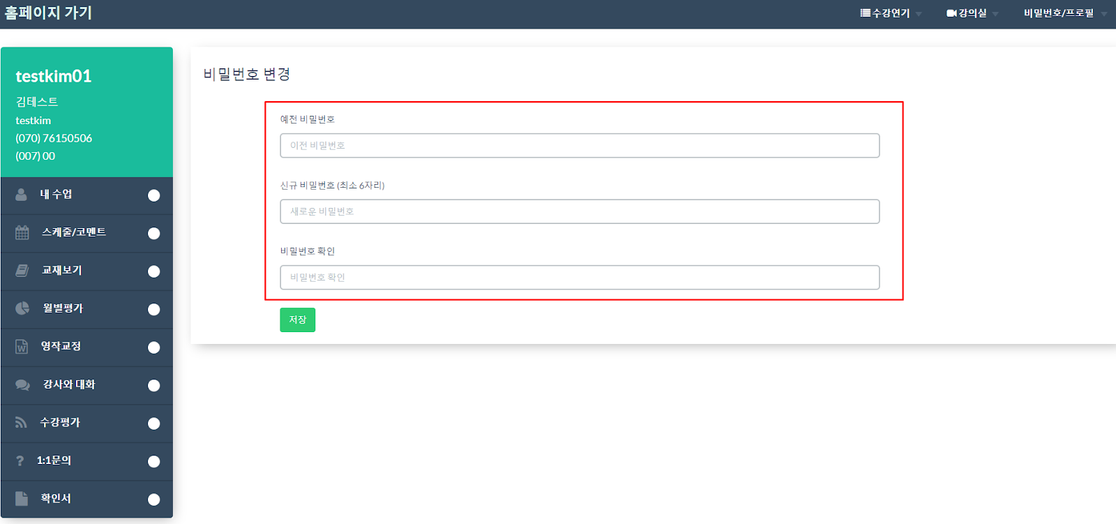 첫 접속 후 마이페이지에서 비밀번호를 변경 후 이용해 주세요