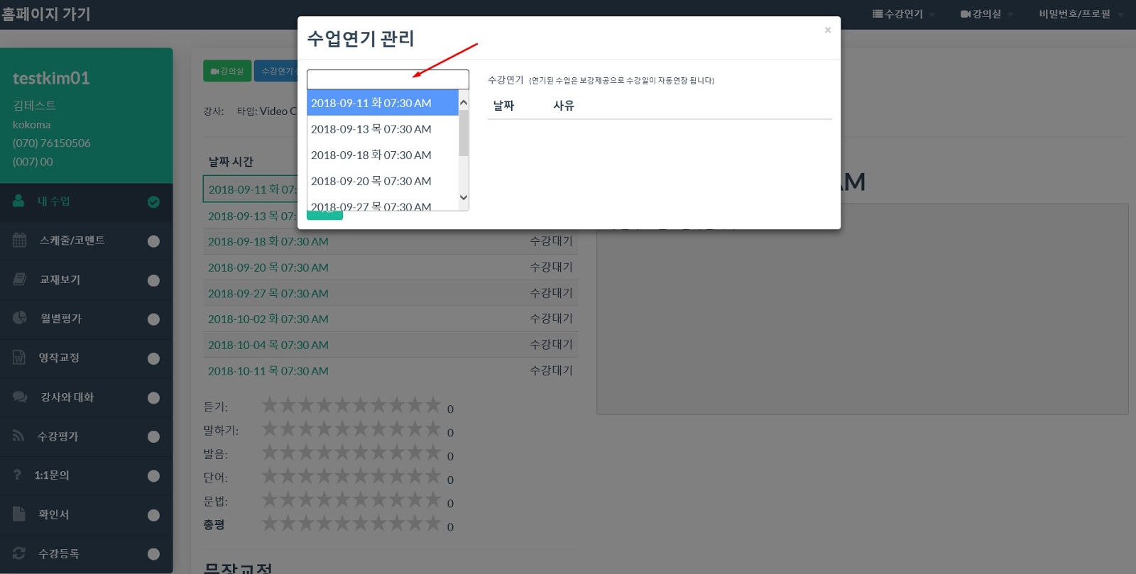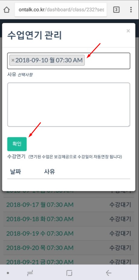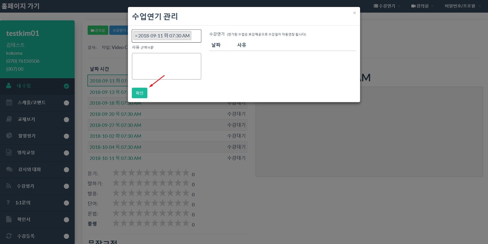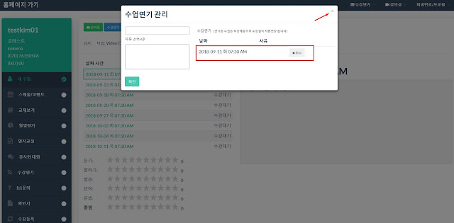 * 셀프 수강연기는 수업 10분전까지 접수가능 (수강연기 횟수를 초과하여 신청하는 경우 클릭안됨)