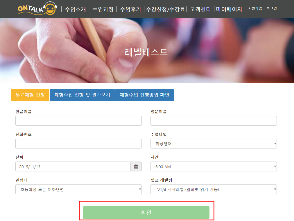 ★ 체험수업 후 정규수업 등록시에는 회원가입이 필요합니다.